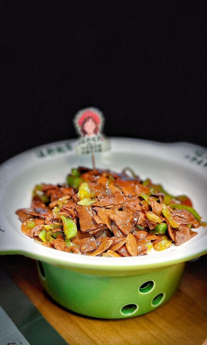 正规的宜良烤鸭,一个是要选用40天以内的云南独有的滇麻鸭制作,另一个必须是宜良本地师傅亲自烤制,还有就是用松针烘烤,让鸭子皮脆肉嫩、骨酥油润的同时还带有一股松木的清香。在滇彩魁首,这样一只正宗的宜良烤鸭,一只才买98元。整只端上来,色泽红润,皮脆肉嫩,肥瘦适中,顿时感觉花好几百还只能吃皮的北京烤鸭不值了。个人推荐,蘸蜂蜜芥末酱吃,味道更好。【功夫皱皮椒炒黑牛肝菌】黑牛肝菌,味道鲜美,是最香的牛肝菌之一。皱皮椒,味道比普通青椒更为暴烈,呛辣。只见大厨手腕猛抖,底下的灶台顿时蹿起三尺火焰,椒和菌在烈焰之中翻炒飞舞。单是看着炒制过程,就已经让人垂涎欲滴了。